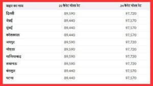 न्यूज़ डेस्क। पिछले कुछ दिनों से सोने के भाव (Gold Rate) में लगातार गिरावट देखने को मिली है। जो अब ताजा भाव सामने आया है, वो सोने खरीददारों के लिए खुशख़बरी जैसा है। दिल्ली से लेकर मुंबई जैसे बड़े शहरों में 10 ग्राम 24 कैरेट सोने का भाव 97,500 रुपए और 22 कैरेट का सोने का 89,400 रुपए के ऊपर ही बना हुआ है। सोने के भाव में गिरावट तो वहीं चांदी नए पीक पर कारोबार कर रही है। चांदी 1,09,000 रुपए प्रति किलोग्राम पर कारोबार कर रही है।